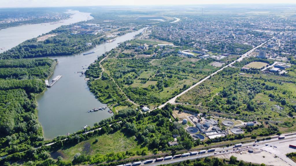 În imagine este fotografiată stația de epurare din Giurgiu situată langă podul Giurgiu-Ruse