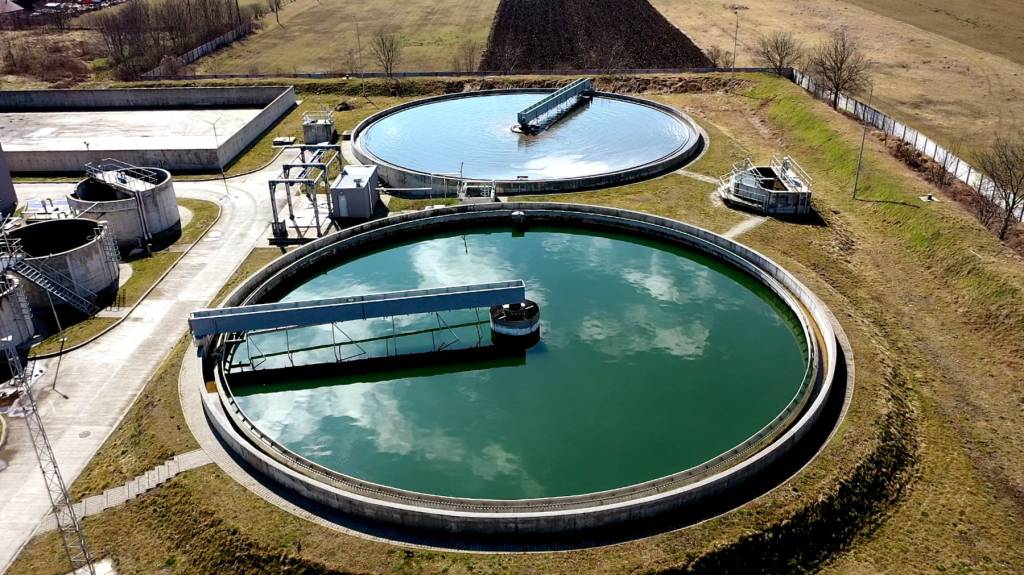 Statia de Epurare a apelor uzate din Alba Iulia, decantoare surprinse din drona